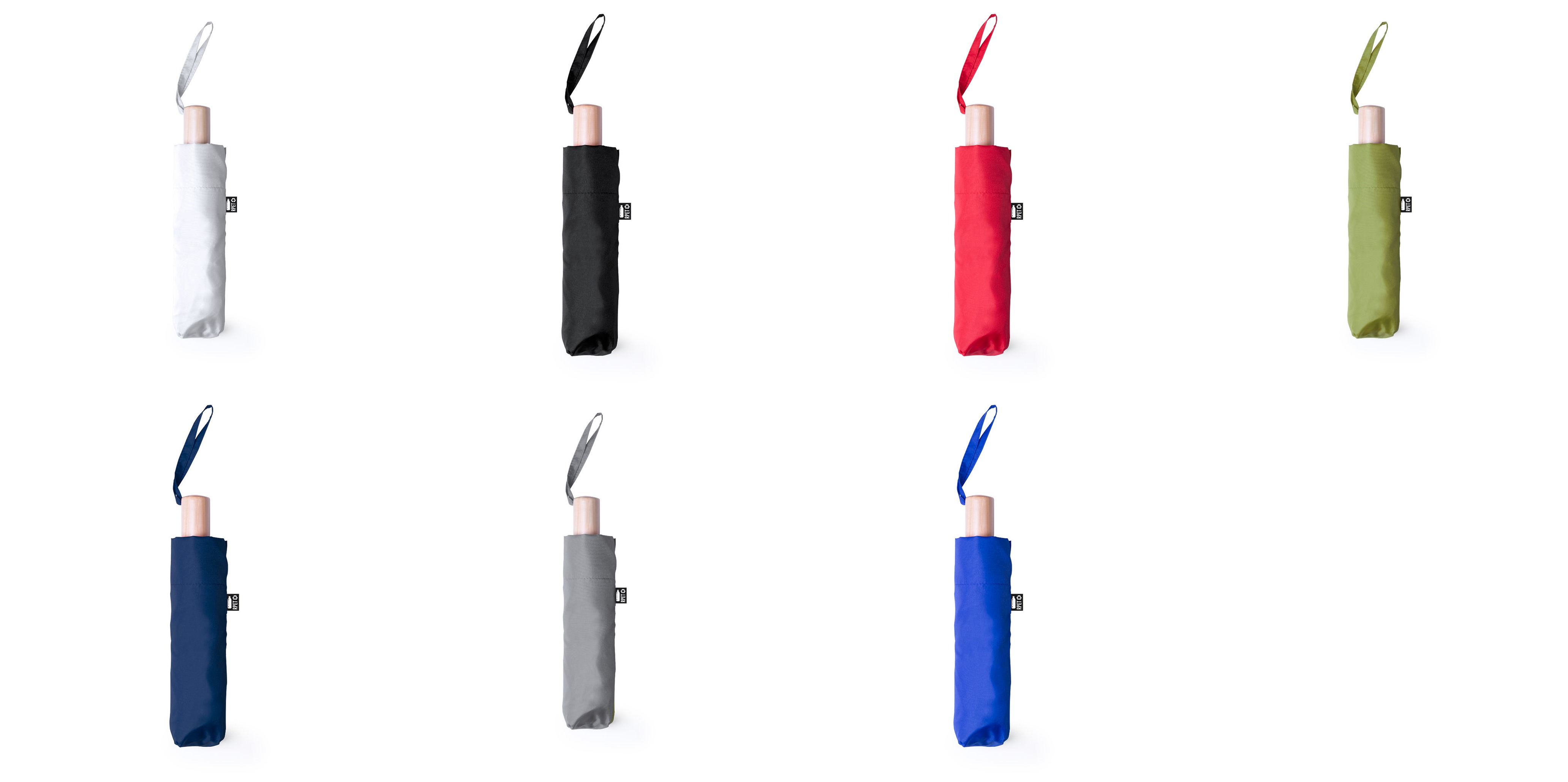 Paraguas plegable de línea nature de 95cm de diámetro. En material pongee 190T RPET, elaborado a partir de plástico reciclado, para así fomentar la reutilización de residuos plásticos y ayudar a la sostenibilidad del planeta. De apertura manual, con sistema anti viento y varillas metálicas. Mango de madera, con funda de transporte y cintas a juego. Con etiqueta distintiva RPET