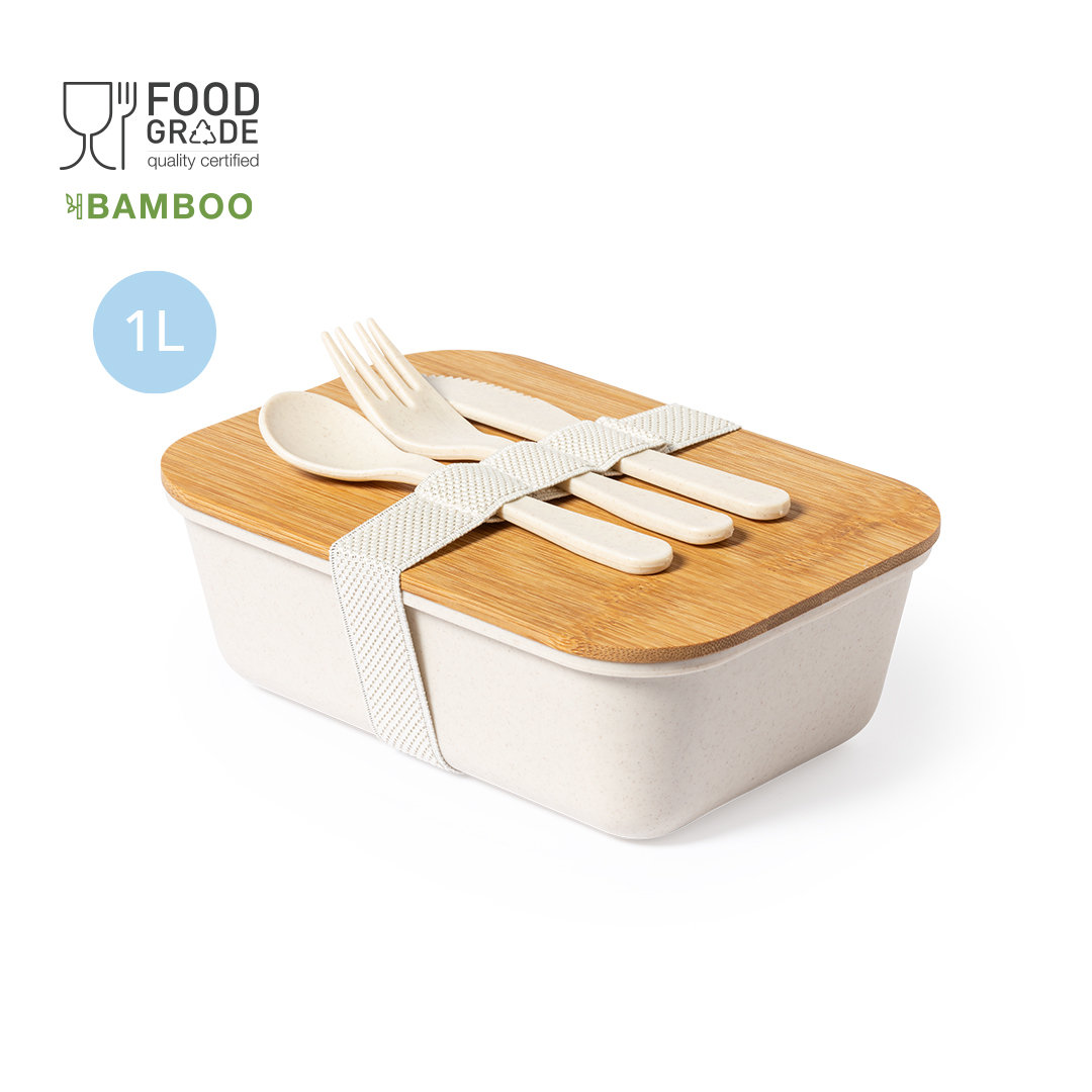 Set de fiambrera y nevera de línea nature con Certificación Food Grade, garantizando la seguridad cuando los alimentos entran en contacto con el material usado para fabricar el producto. Incluye:Nevera fabricada en material 100% algodón, con interior isotermo acabado en aluminio. Cierre de cremallera con doble tirador de cordón y asa de transporte a juego.Fiambrera fabricada en PP veteado libre de BPA, con tapa de bambú y 1l de capacidad. Cierre de cinta elástica de seguridad, con compartimentos para tenedor, cuchara y cuchillo (incluidos).