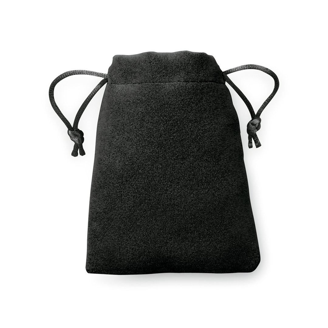 Bolsita de antelina con cuerpo de suave acabado en vivos y variados colores. Con cierre de cinta a juego.