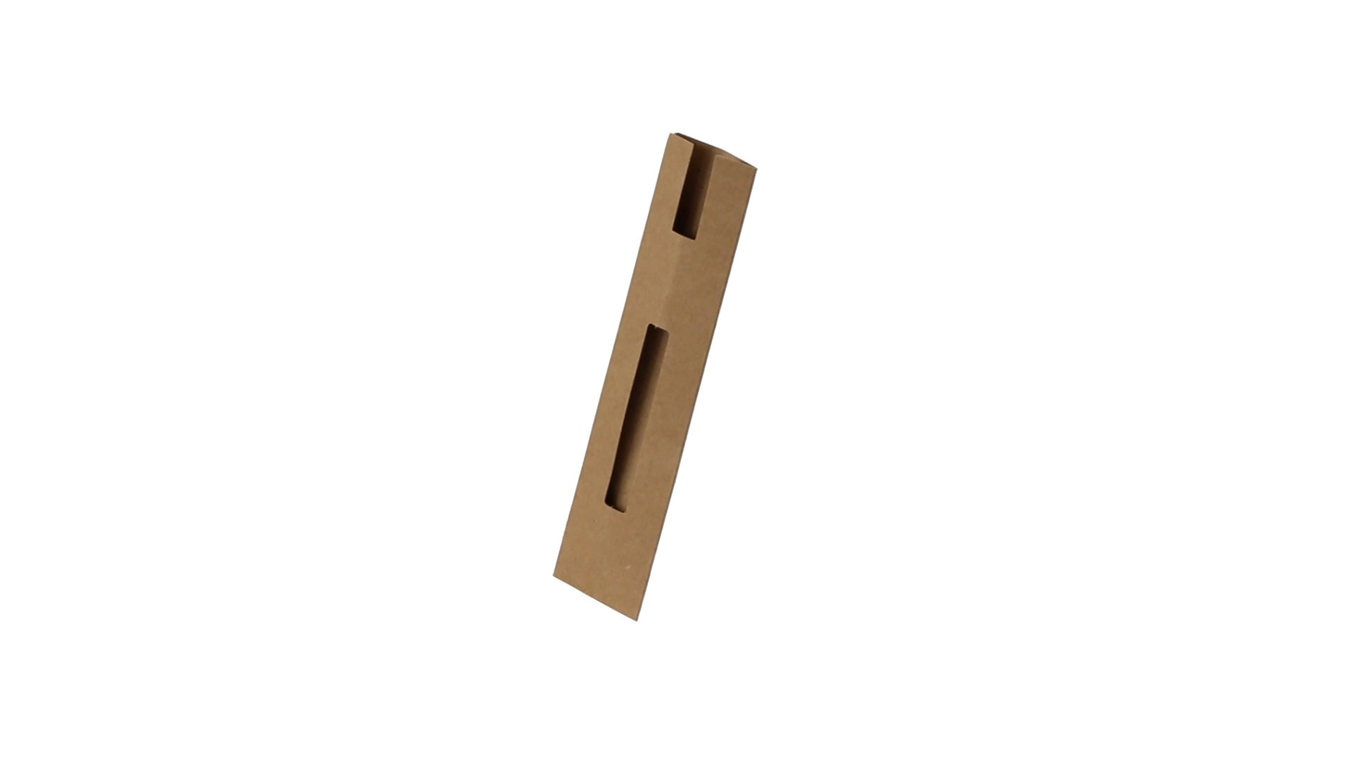 Funda para bolígrafo en resistente cartón reciclado de color natural y con diseño de ventana.