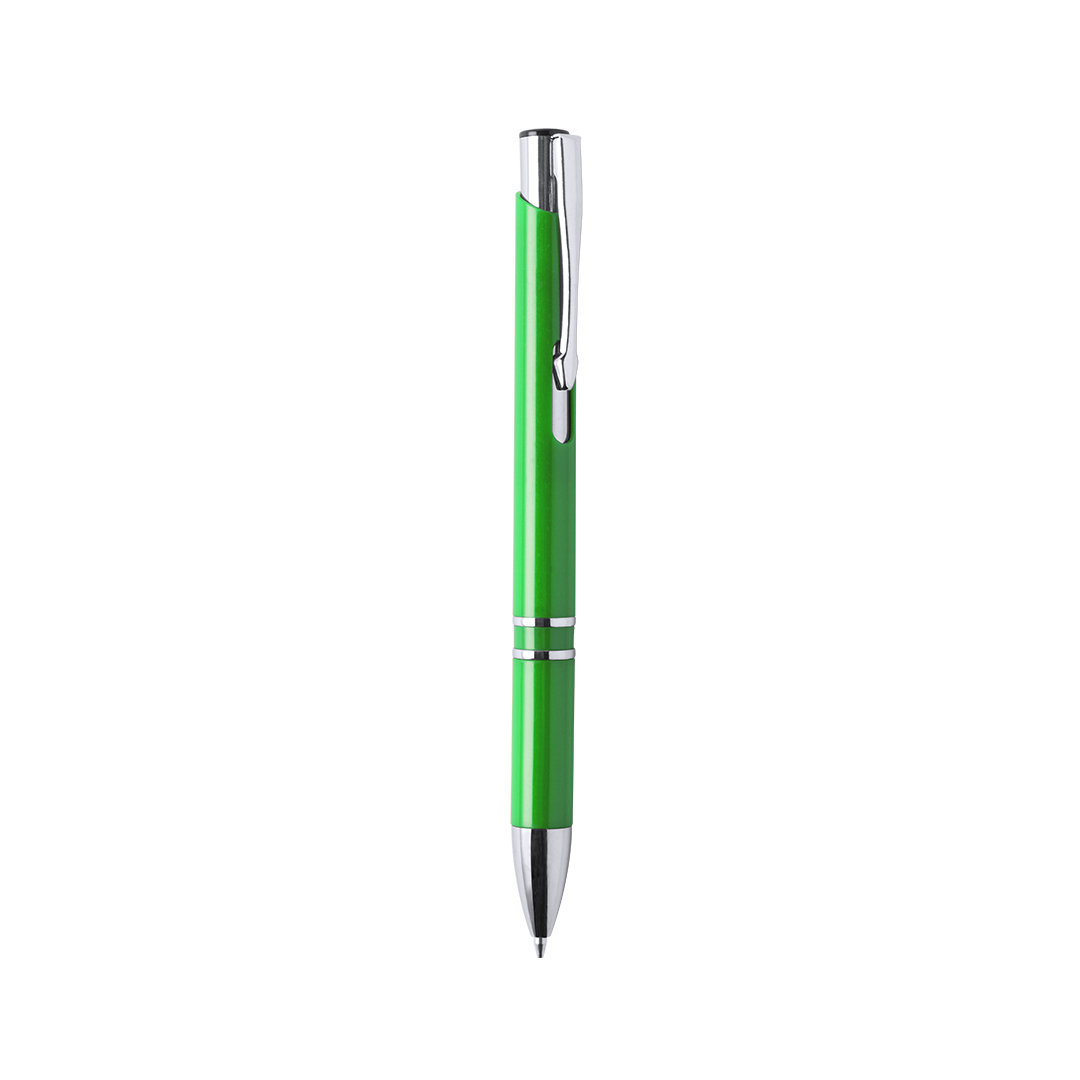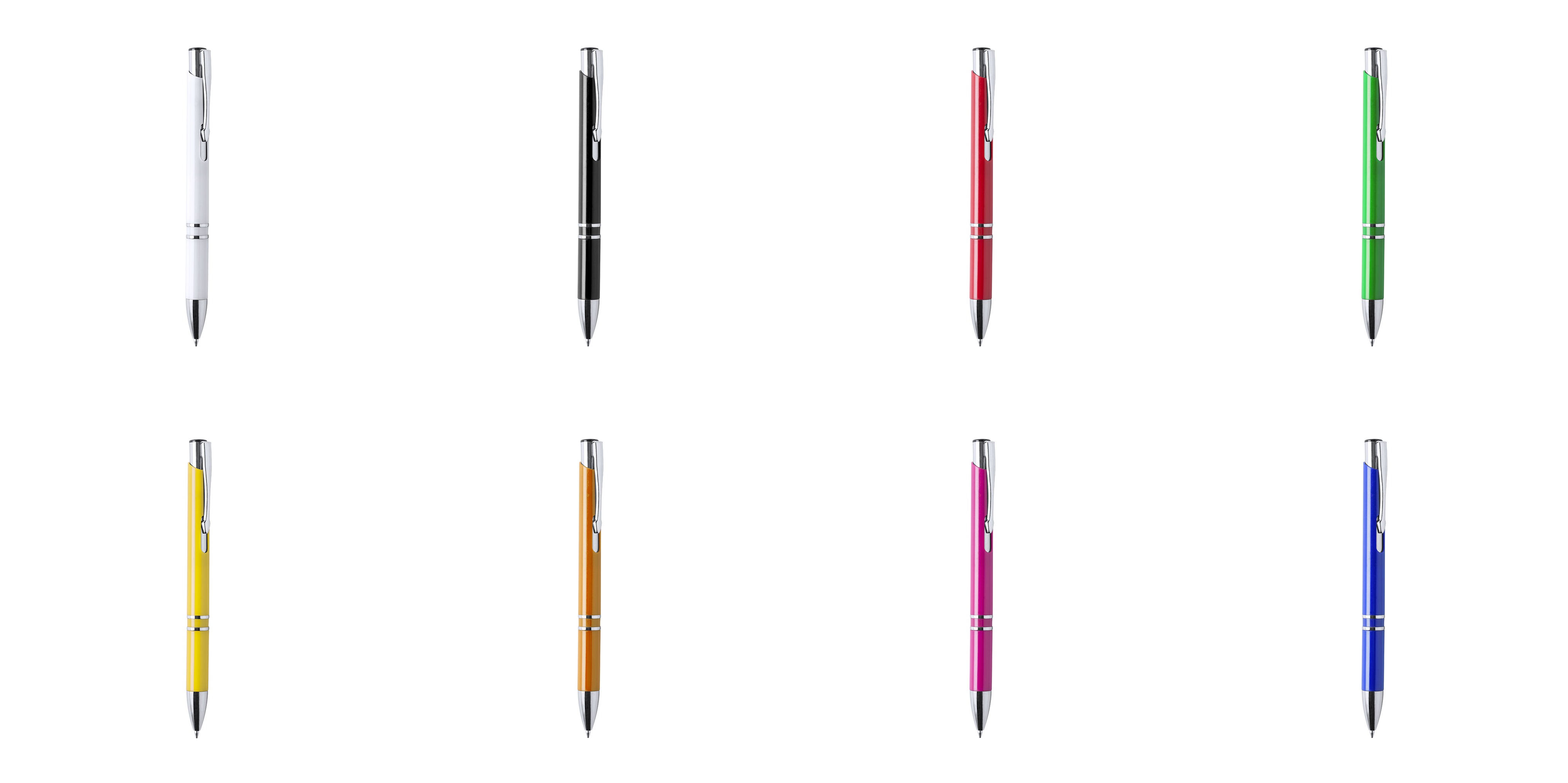 Bolígrafo con cuerpo en brillantes colores. Detalles en cromado y original muesca en cuerpo. De mecanismo pulsador, con cartucho jumbo y tinta azul.