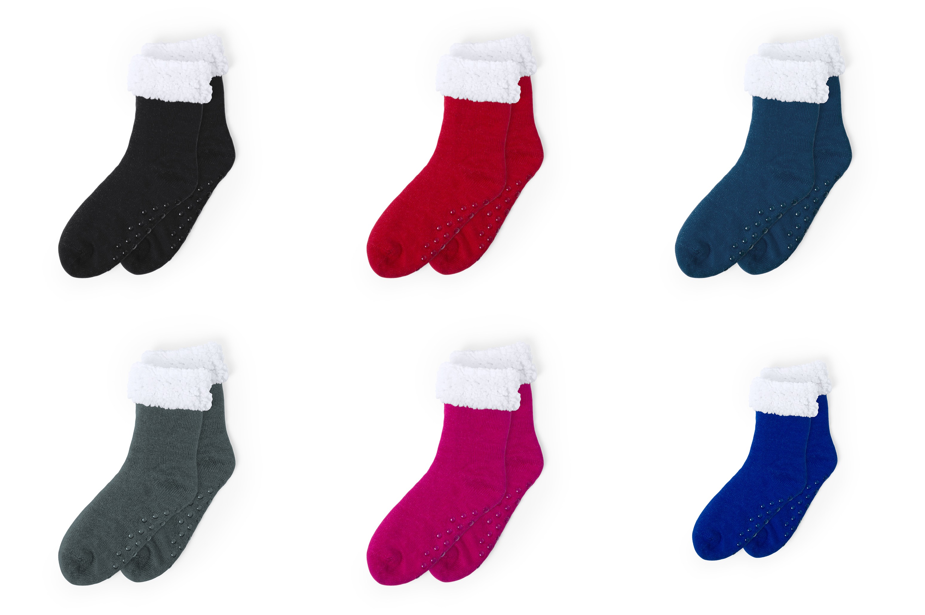 Par de suaves y cálidos calcetines para casa en variada gama de vivos colores. Con suela anti deslizante en silicona.