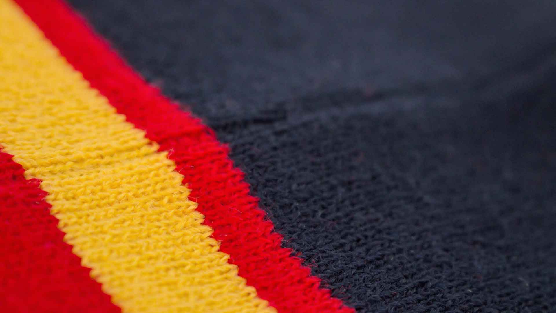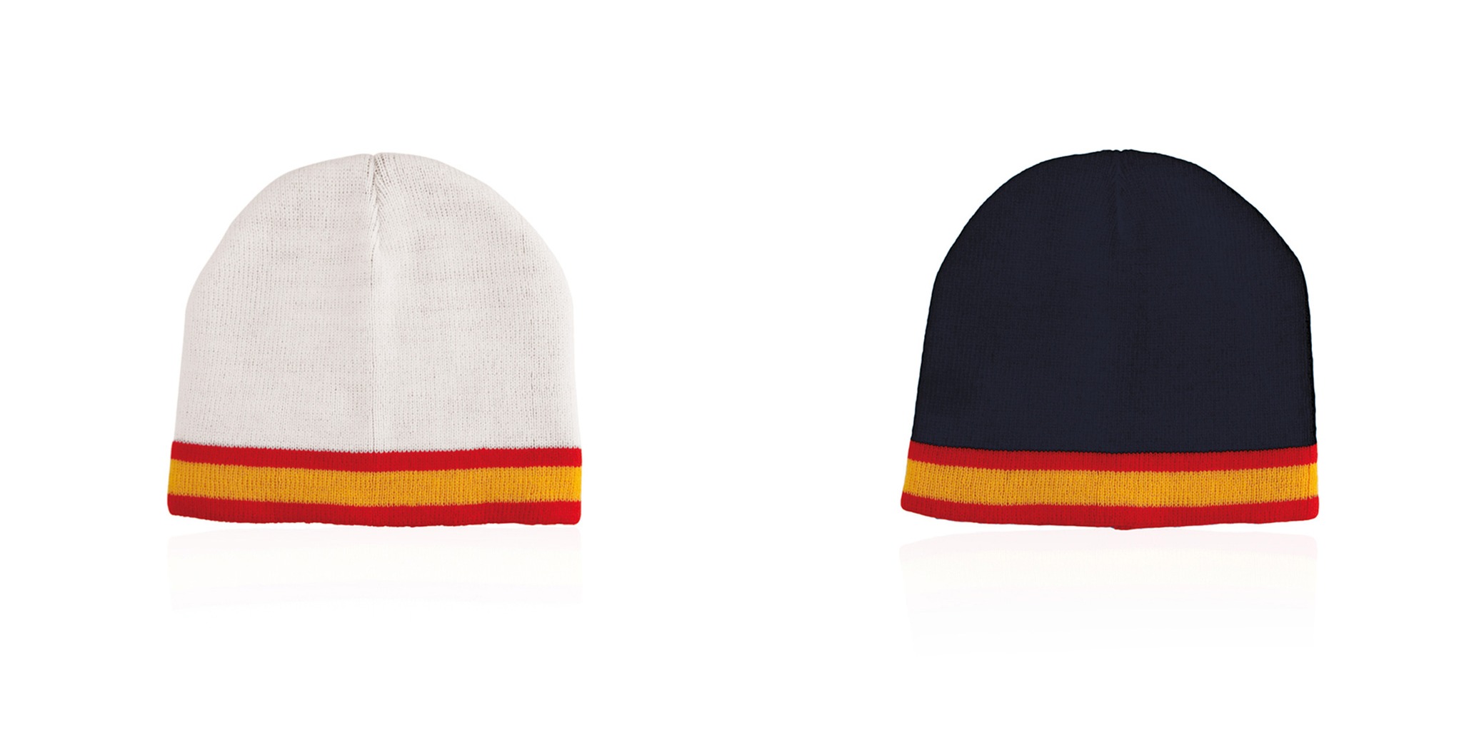 Suave y cálido gorro en combinación de materiales algodón y poliéster elástico de diseño España con doble cobertura. Disponible en colores azul y blanco.
