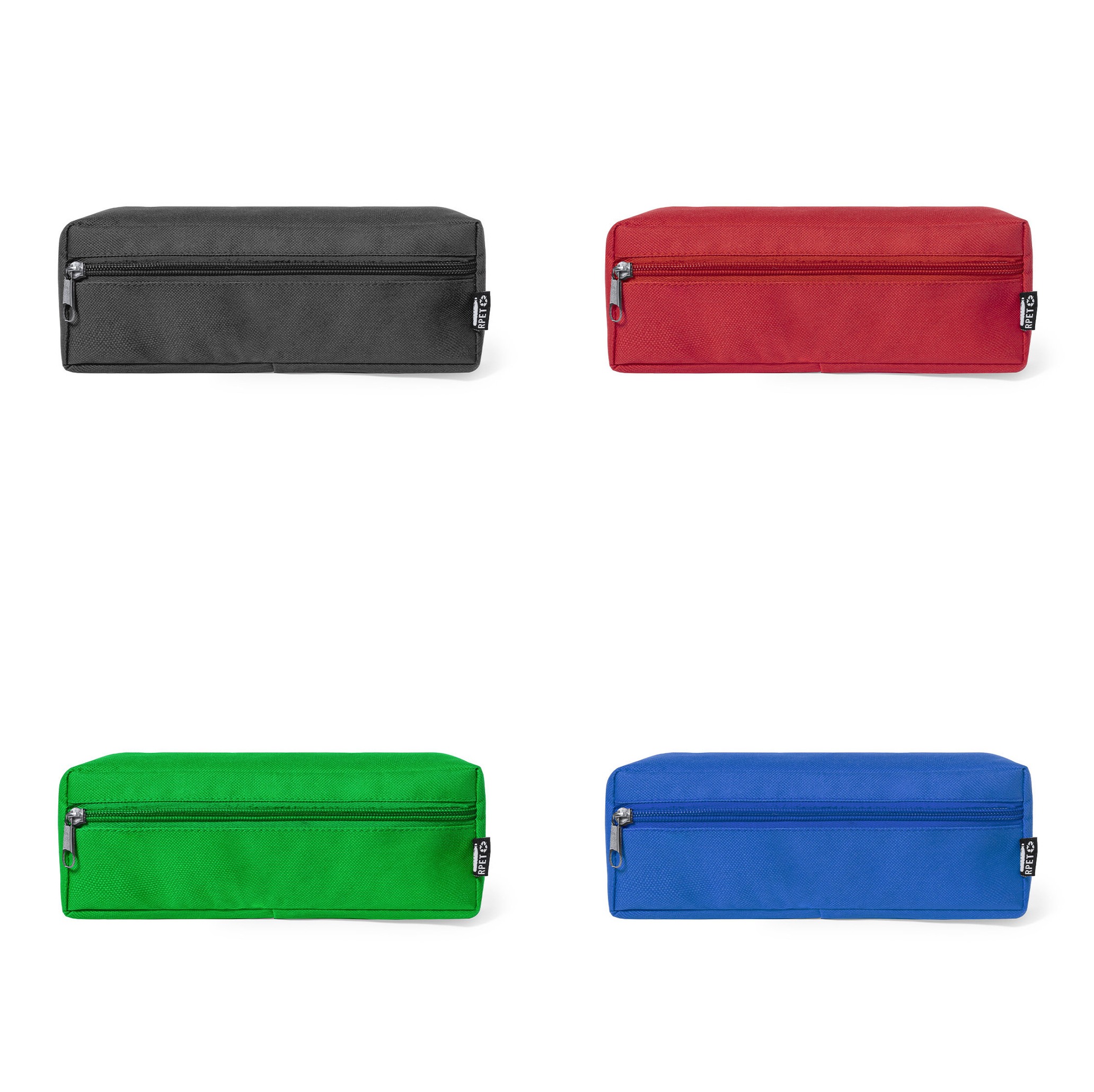 Estuche en resistente poliéster 600D RPET, elaborado a partir de plástico reciclado, para así fomentar la reutilización de residuos plásticos y ayudar a la sostenibilidad del planeta. Con cierre de cremallera en frontal y tirador metálico. Distintivo RPET en etiqueta.