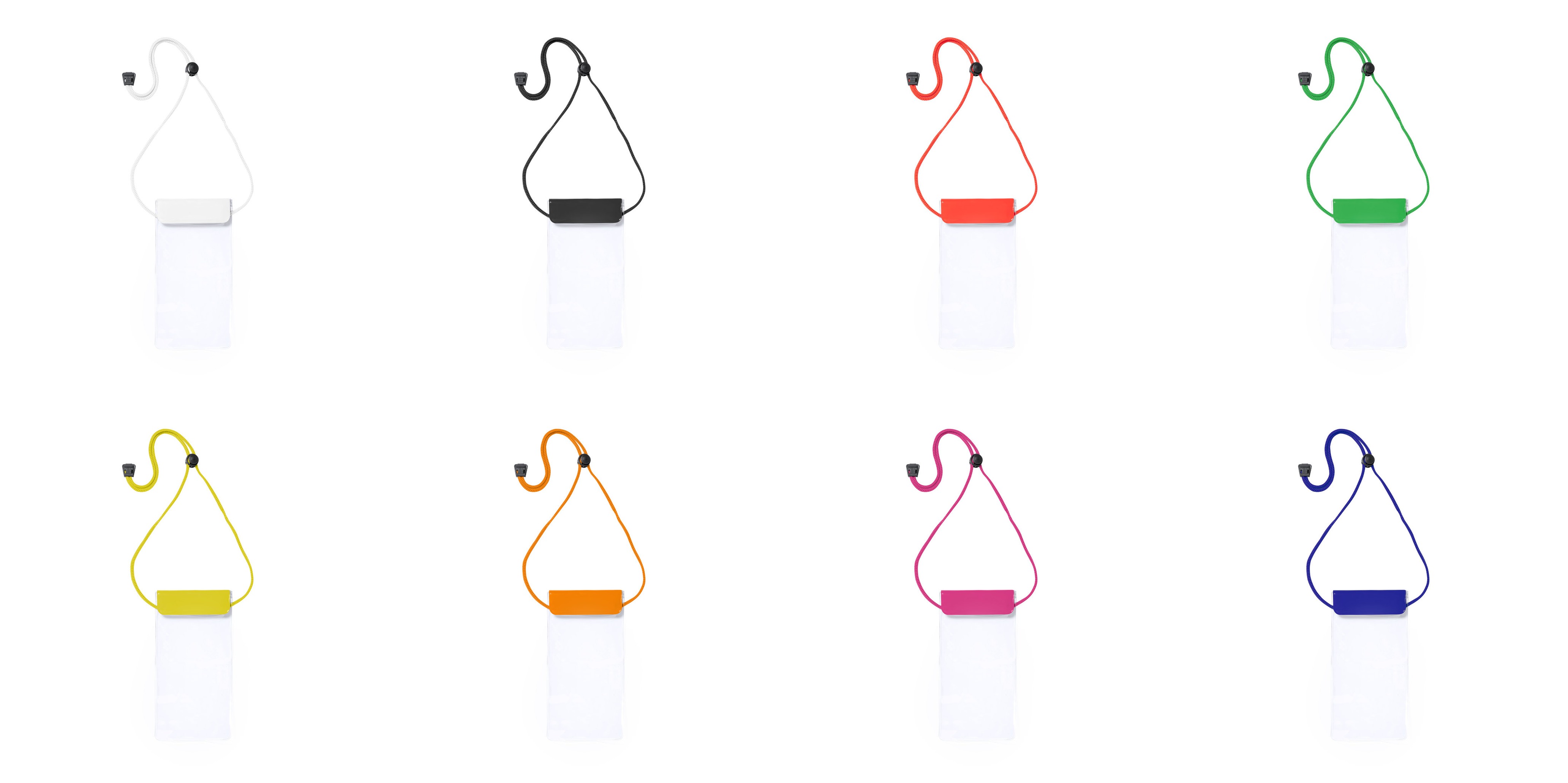 Práctico portatodo impermeable en PVC, con función táctil y doble sistema de seguridad para preservar la estanqueidad. Especialmente diseñado para dispositivos con pantalla de 6,5 pulgadas. Con cordón a juego, accesorio de ajuste y amplia superficie de marcaje.