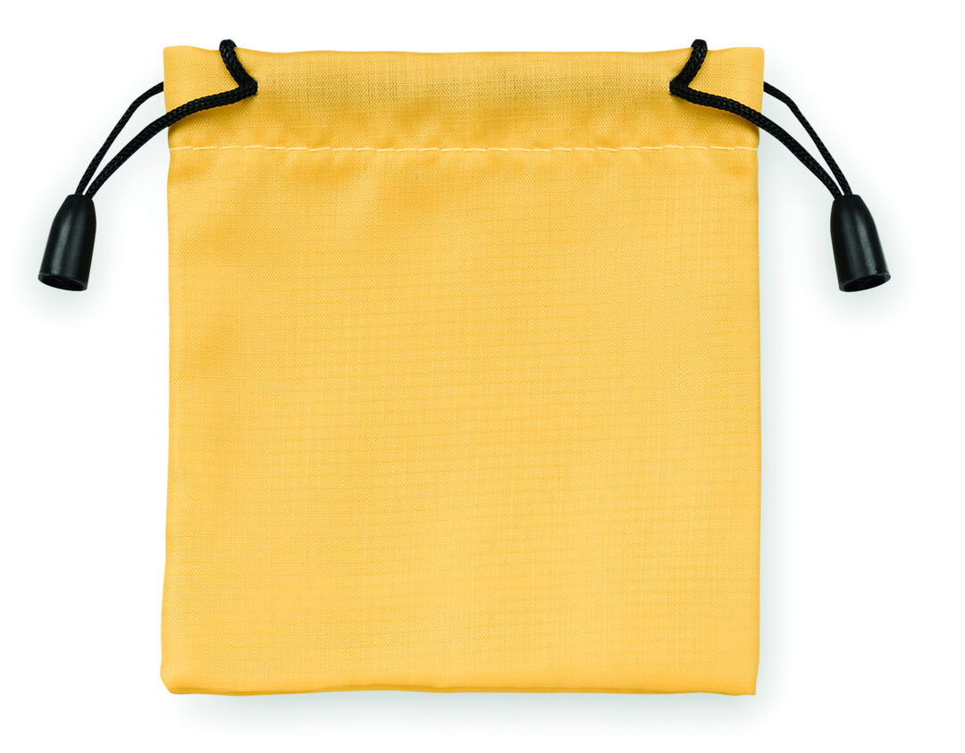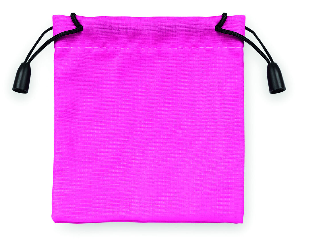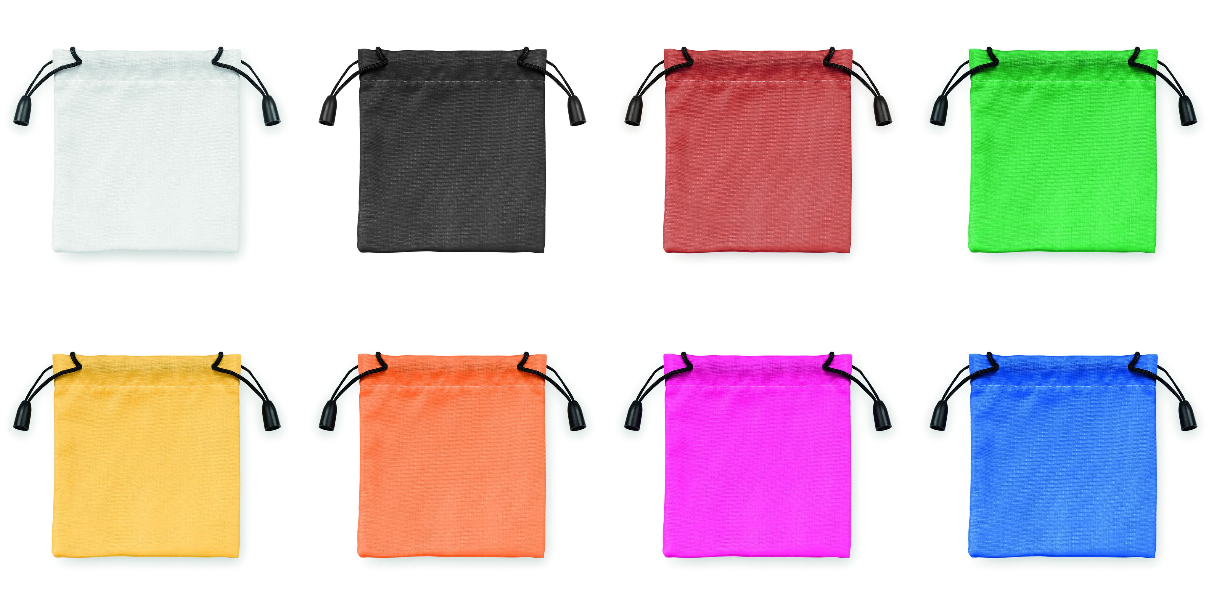Bolsita de poliéster con cuerpo de suave acabado en vivos y variados colores. Con cierre de cuerda.