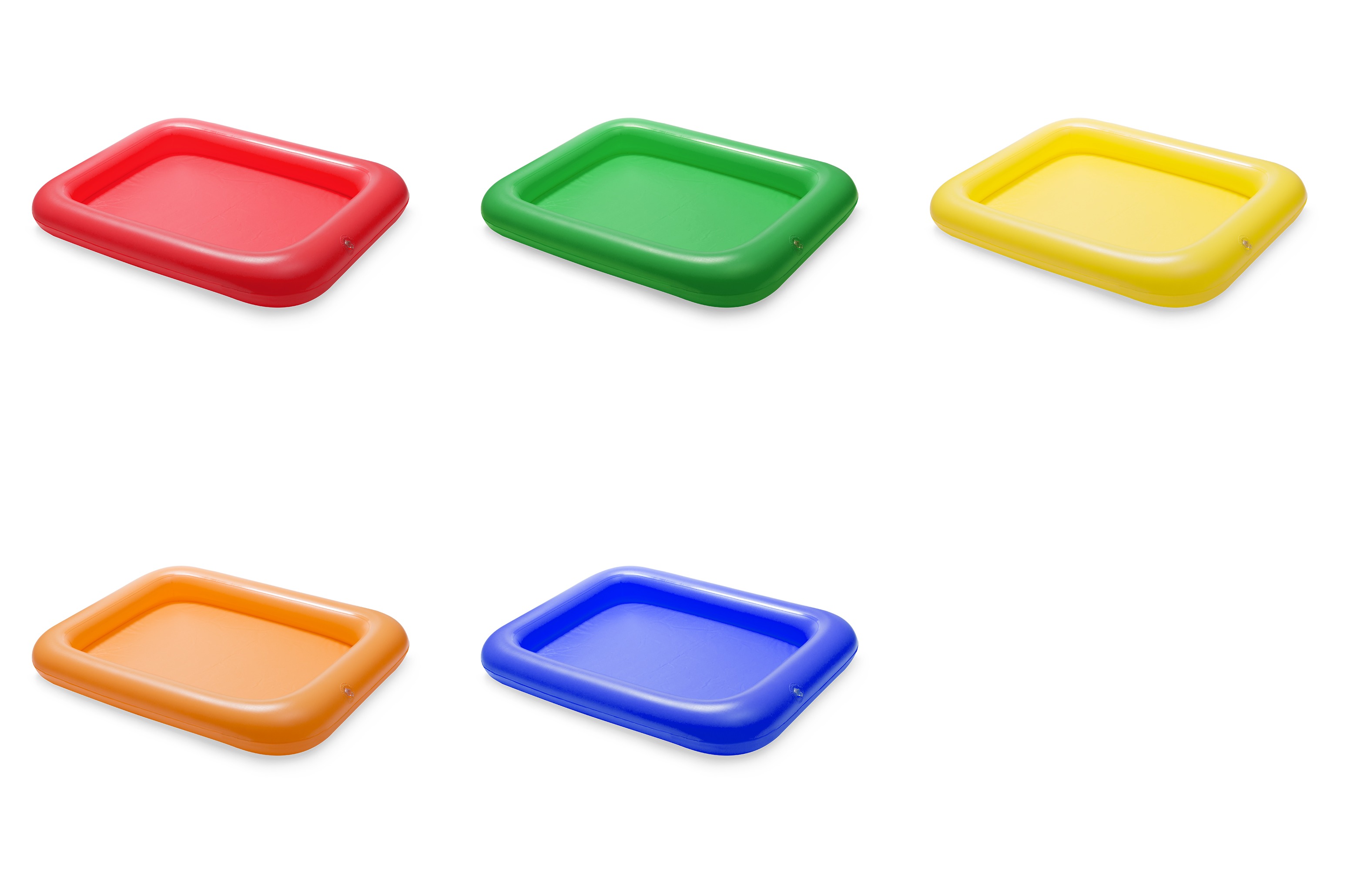 Original mesa inflable de PVC con bordes anticaída en vivos colores.