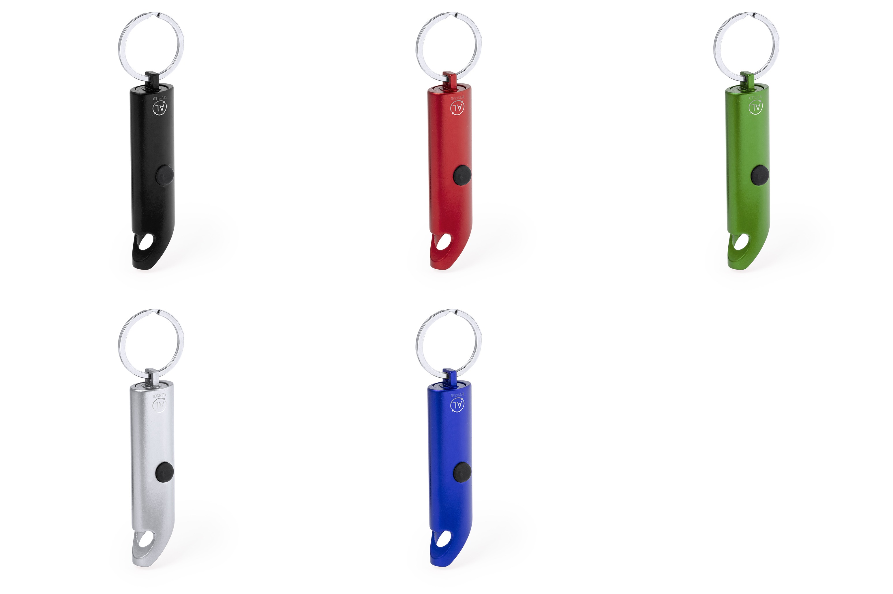 Resistente llavero abridor fabricado en Aluminio Reciclado. Este práctico accesorio cuenta con 3 luces LEDs alimentadas por pilas de botón incluidas. Su diseño incluye un abridor, ofreciendo versatilidad en un solo dispositivo. Incluye logotipo Aluminio Reciclado en un lateral y está disponible en una variada gama de colores. Presentada en caja de diseño kraft..El Aluminio Reciclado es un material con posibilidades de reciclaje casi infinitas, sin perder sus propiedades originales y consumiendo menos energía en este proceso..Certificación GRS (Global Recycled Standard / Estándar de Reciclaje Global), que garantiza el origen reciclado del material usado para fabricar el producto.