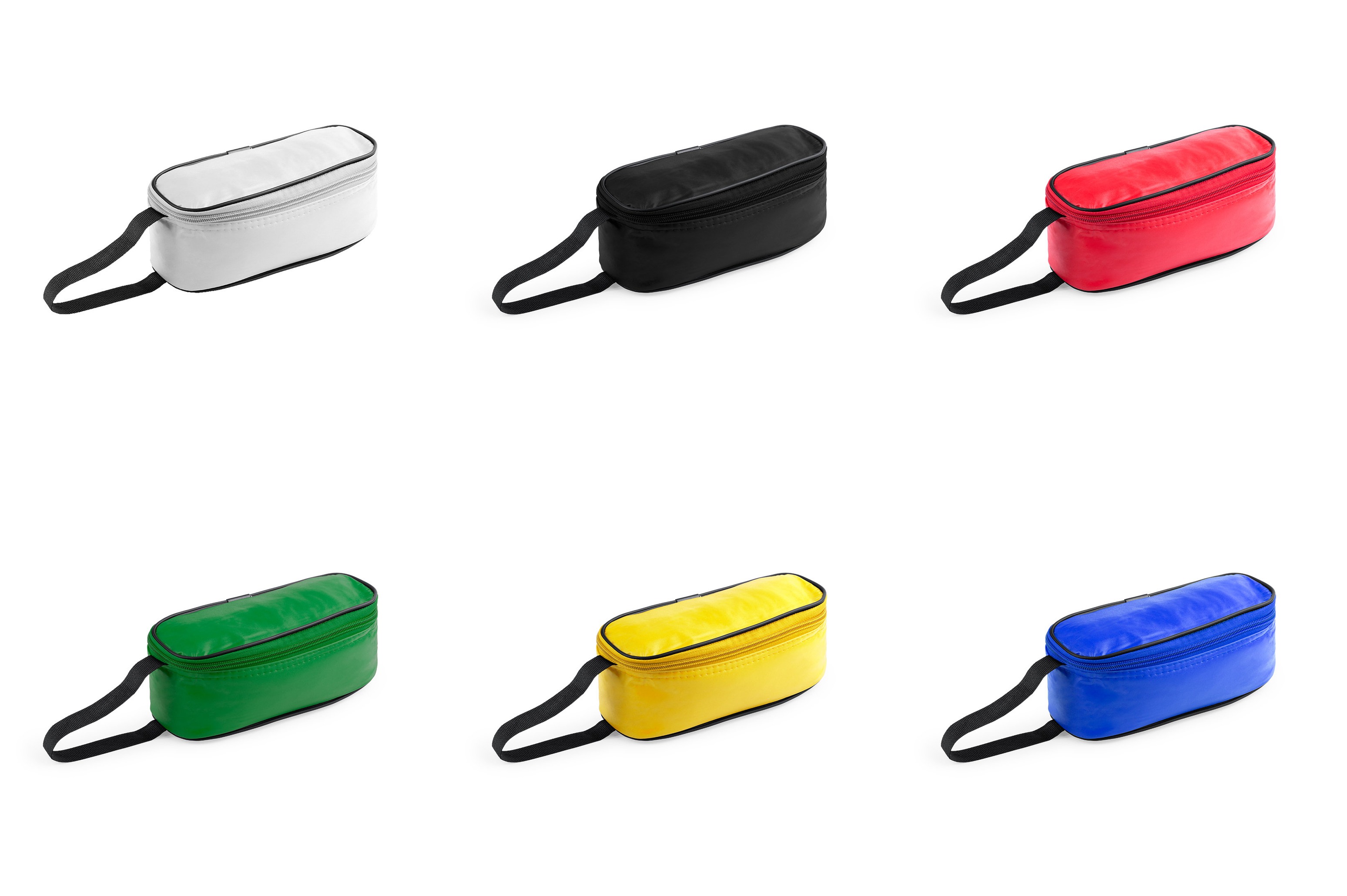 Portabocadillos en resistente PVC de vivos colores y con cierre de cremallera. Con asa en nylon reforzado e interior isotermo en acabado de aluminio.