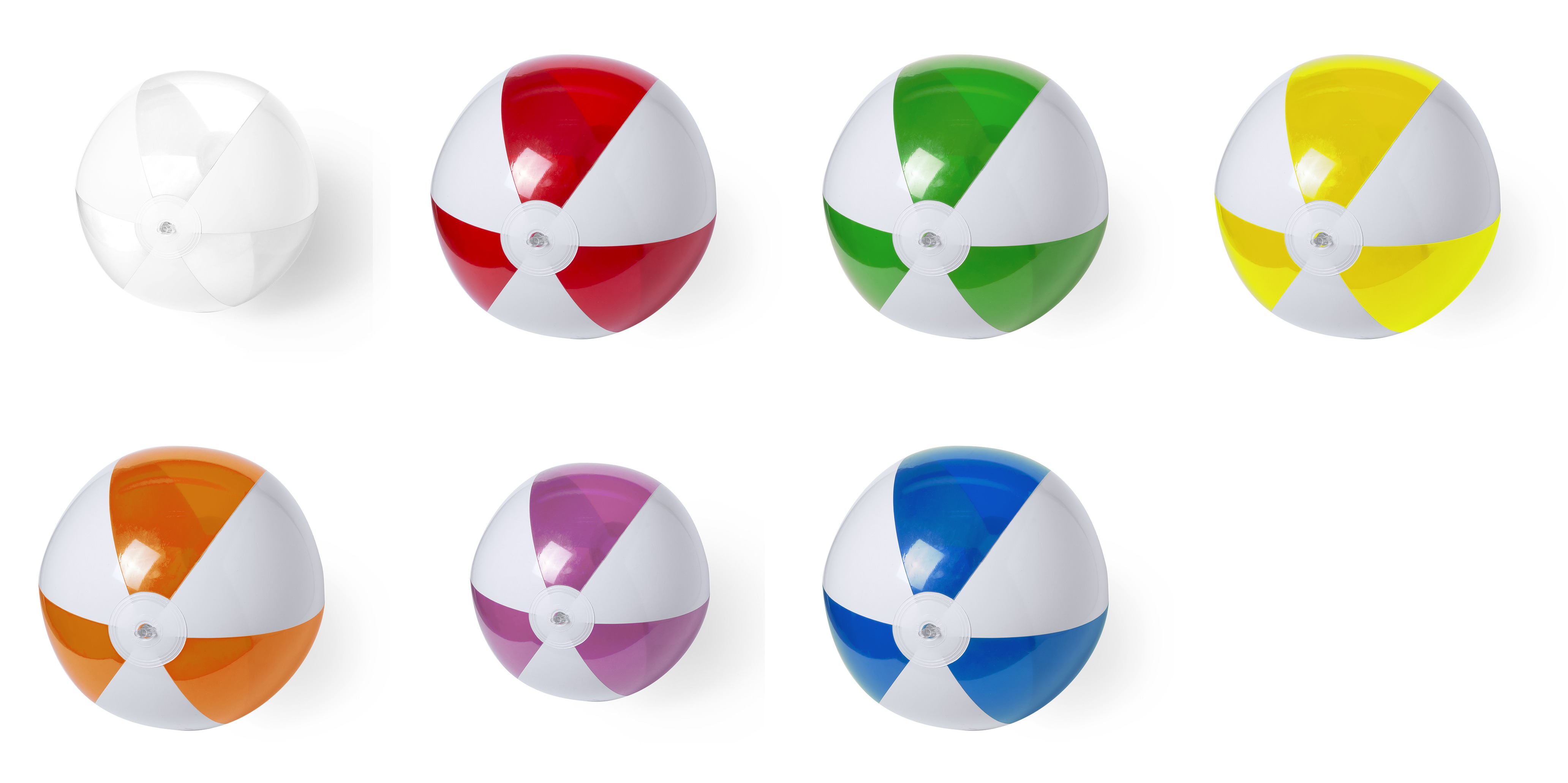 Balón inflable de PVC con diseño bicolor en combinación de paneles blancos y transparentes en vivos colores.